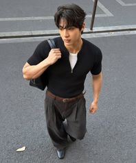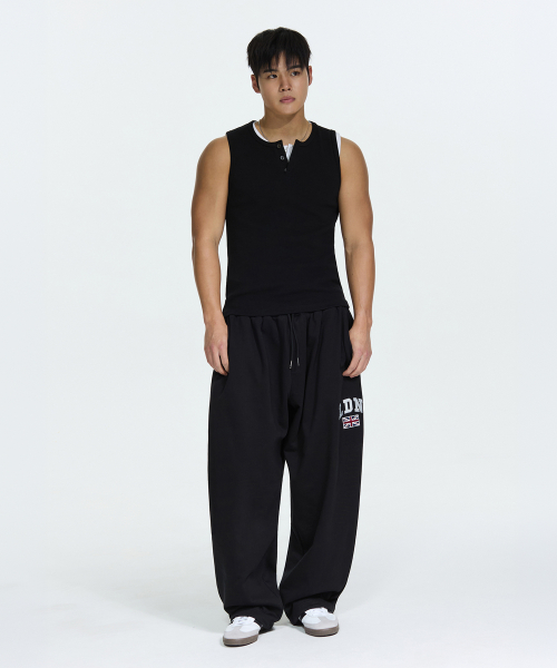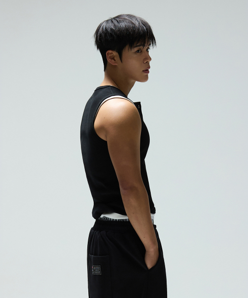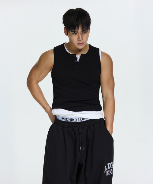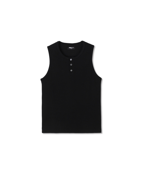 헤비 코튼 헨리넥 슬리브리스 블랙