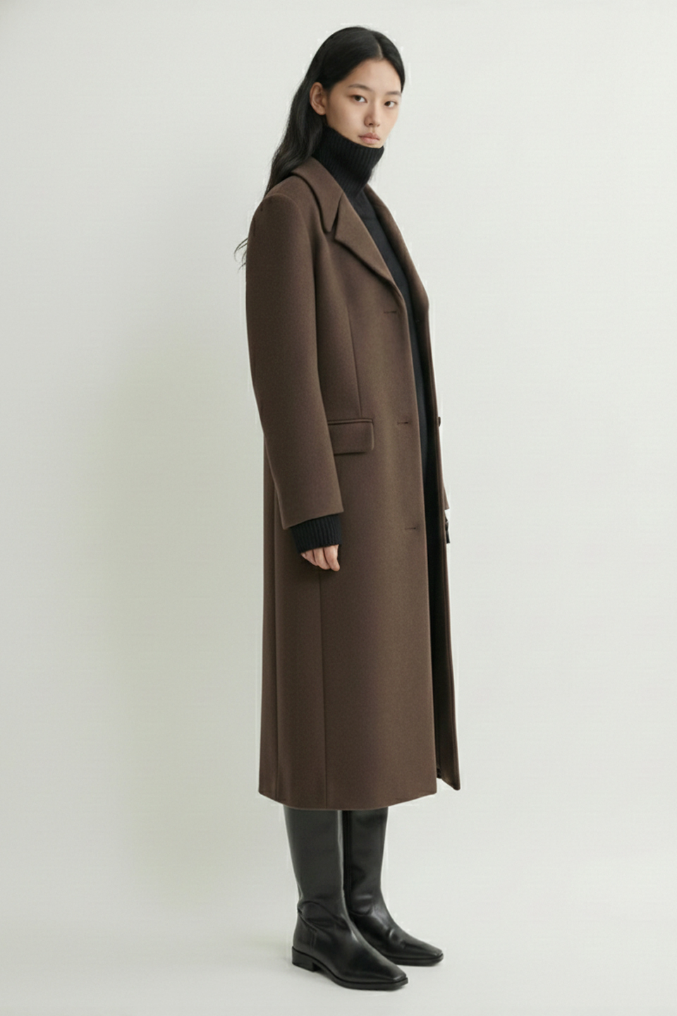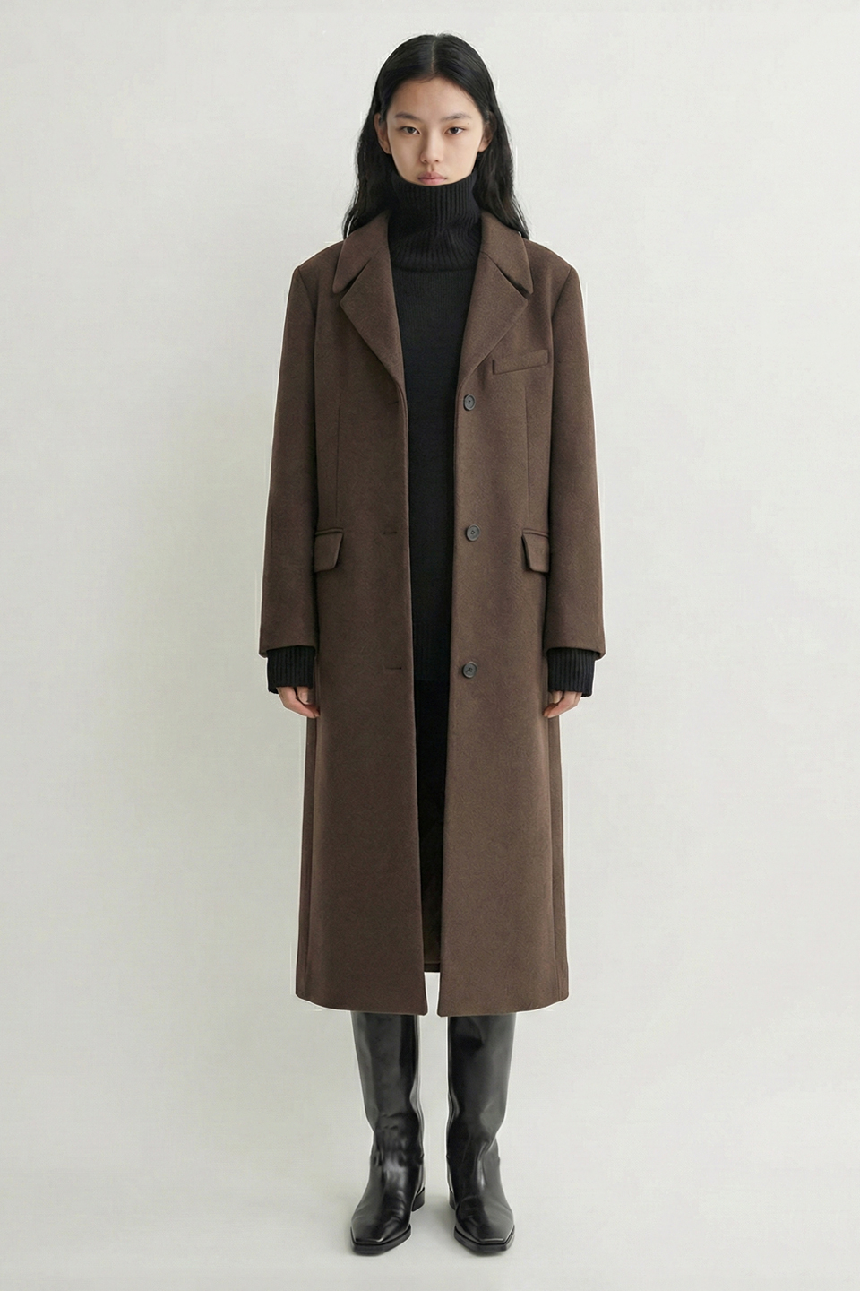 클래식 알파카 울 싱글 롱 코트 [블랙]