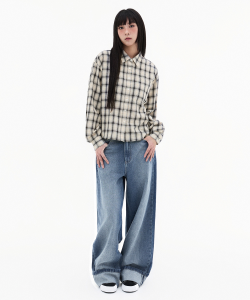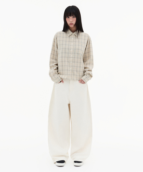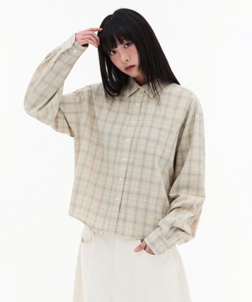 (W) 시어 옴브레 체크 셔츠-베이지