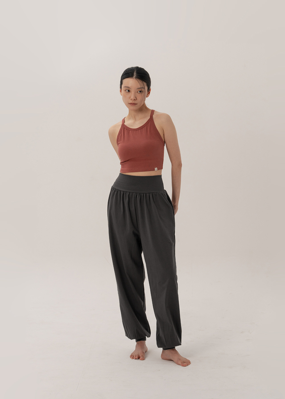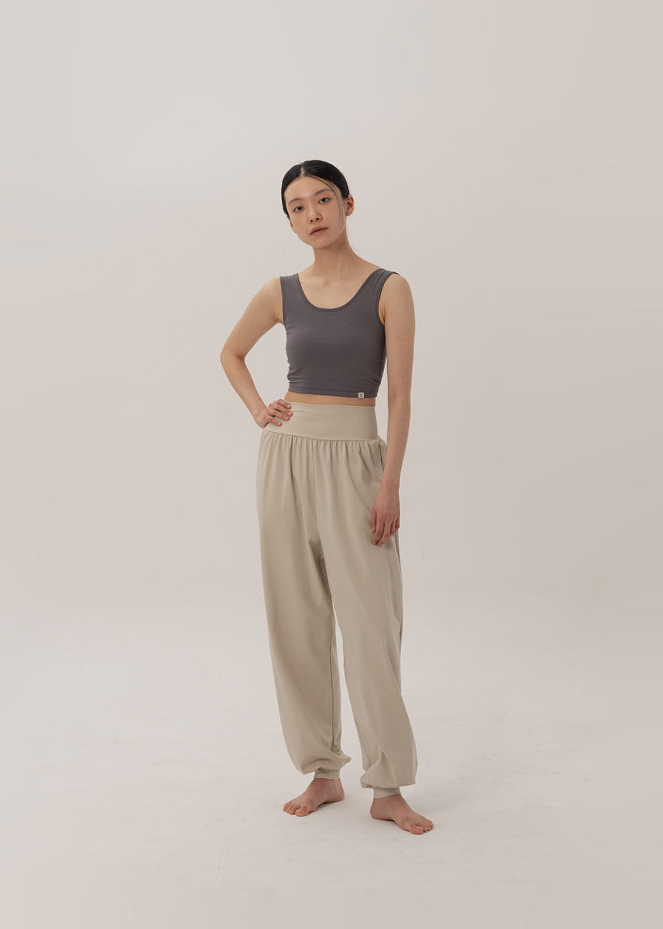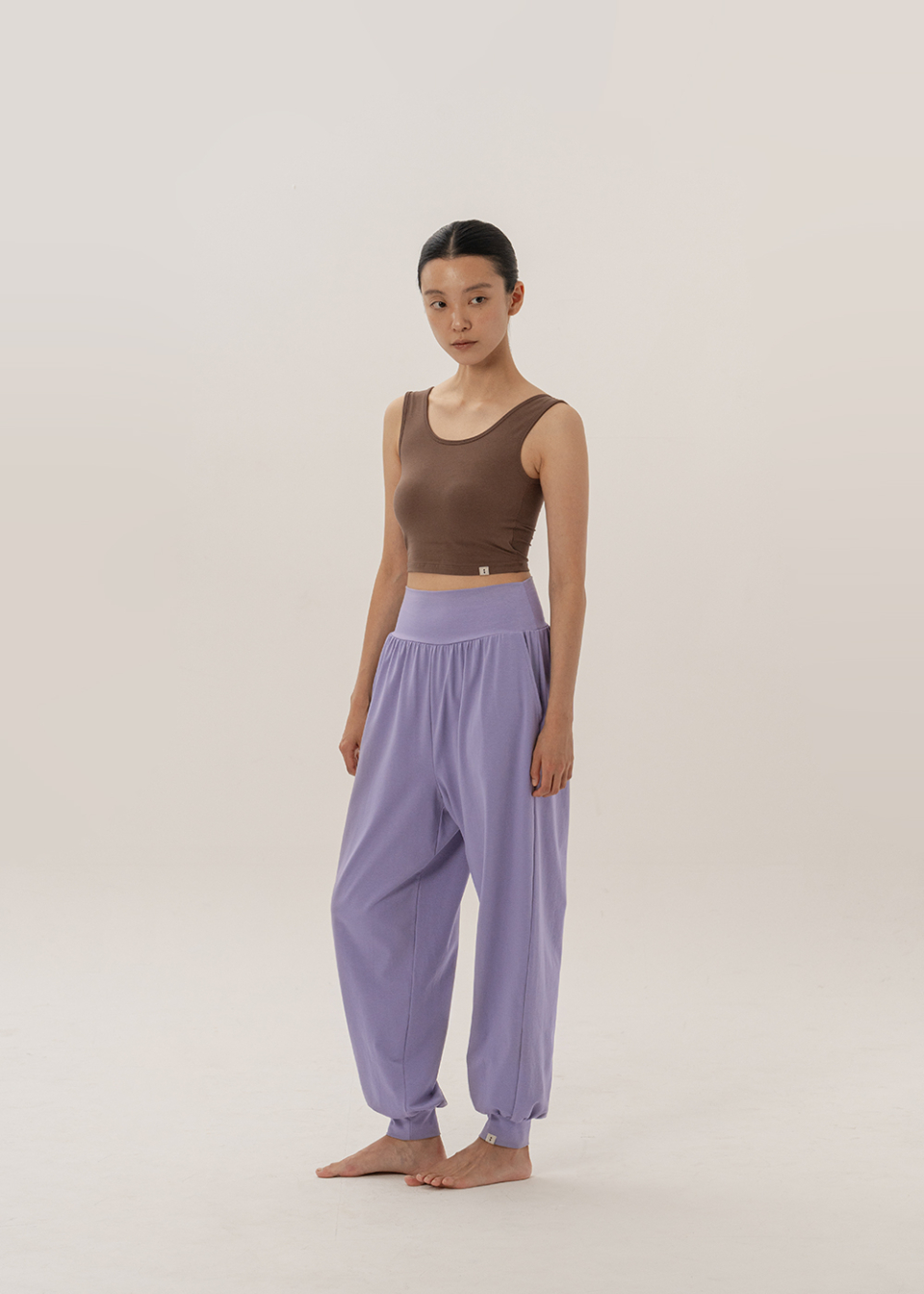쫀쫀한 코튼에 스판을 넉넉히 더해, 움직임을 따라 편안하게 늘어나고 몸의 리듬을 따라 수련의 숨결위로 자연스레 스며듭니다.