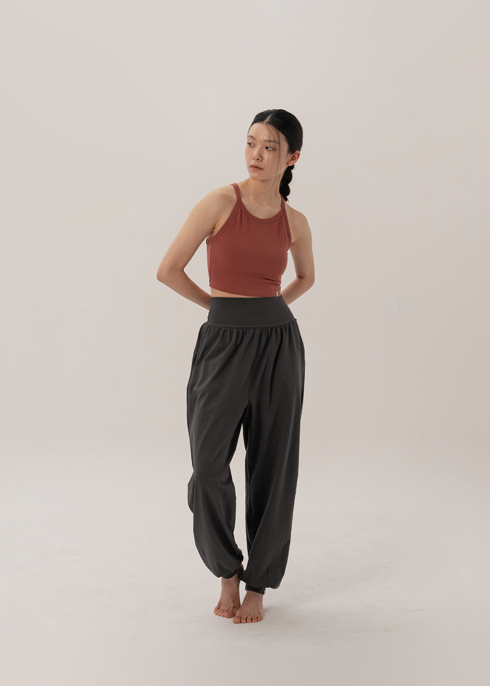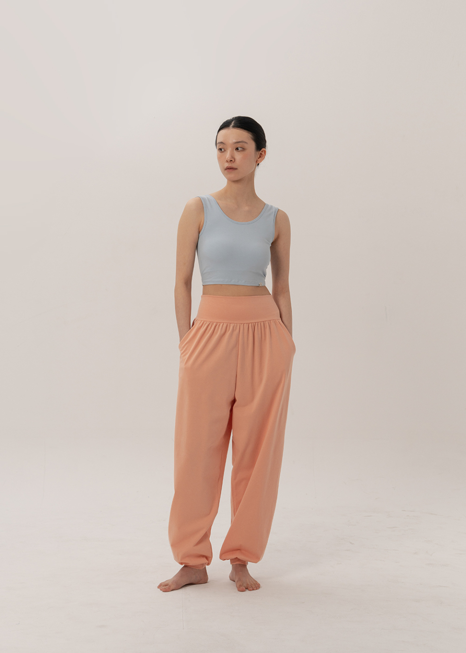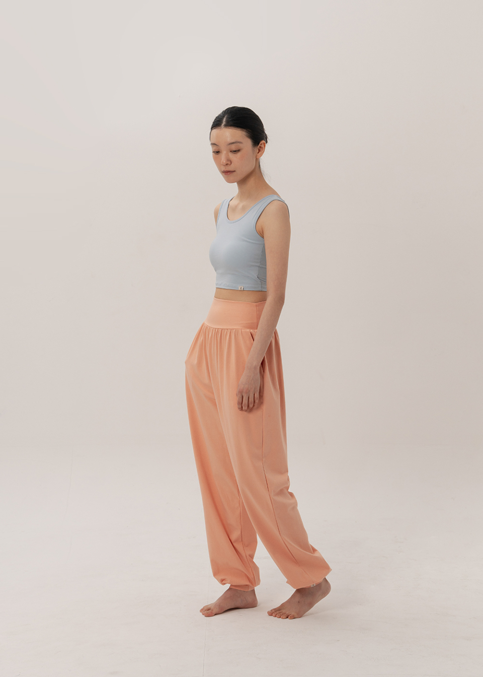쫀쫀한 코튼에 스판을 넉넉히 더해, 움직임을 따라 편안하게 늘어나고 몸의 리듬을 따라 수련의 숨결위로 자연스레 스며듭니다.