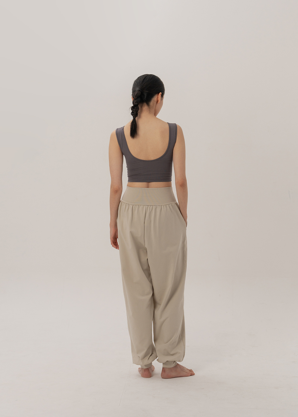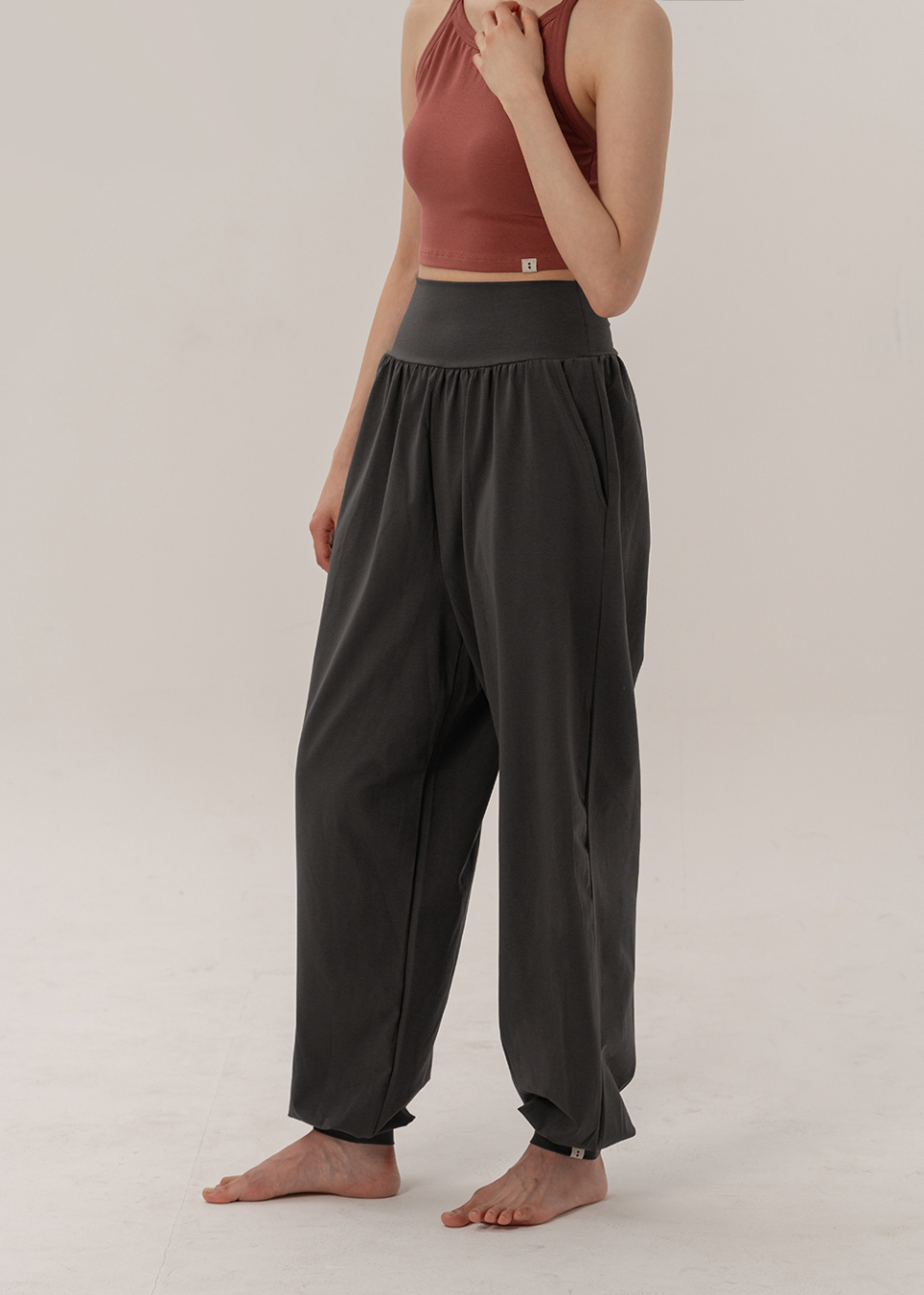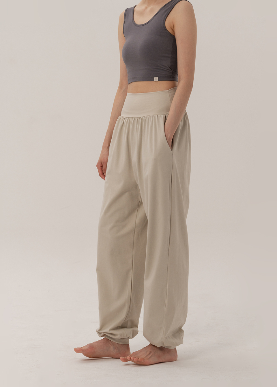 허리선을 부드럽게 감싸는 밴드와 발목을 안정감 있게 잡아주는 재원단 밴딩 덕분에, 장시간 착용시에도 편안함이 지속됩니다.