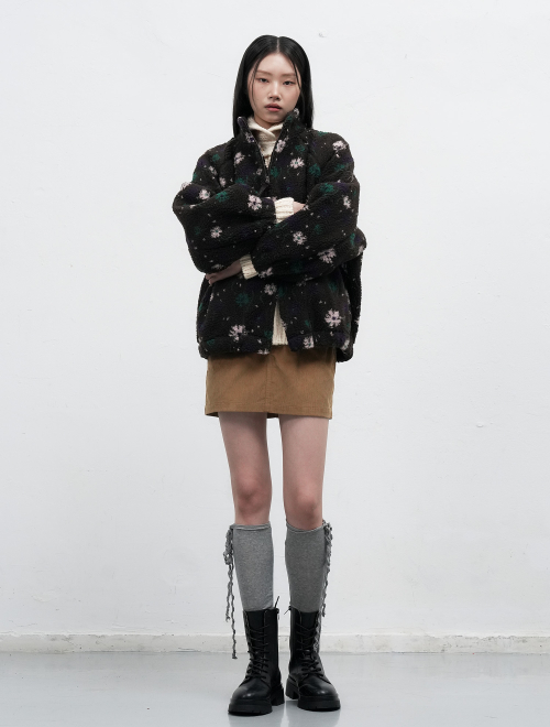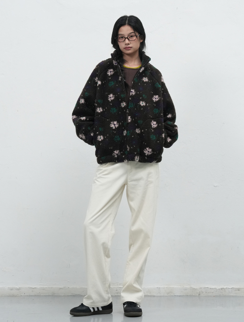 플라워 패턴 플리스 점퍼 [BROWN] / WBE4L07523