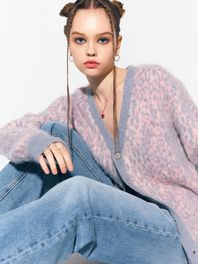 LEOPARD KNIT CARDIGAN PINK