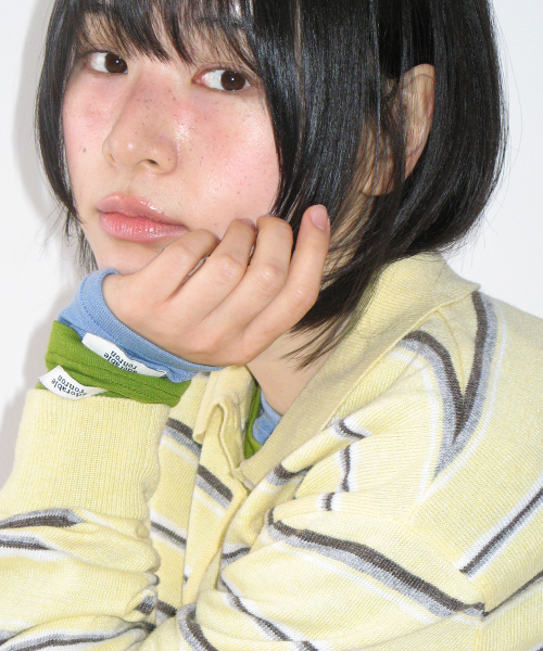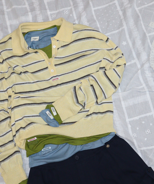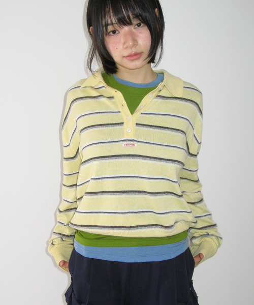 LOOSE FIT STRIPE COLLAR KNIT SOFT YELLOW