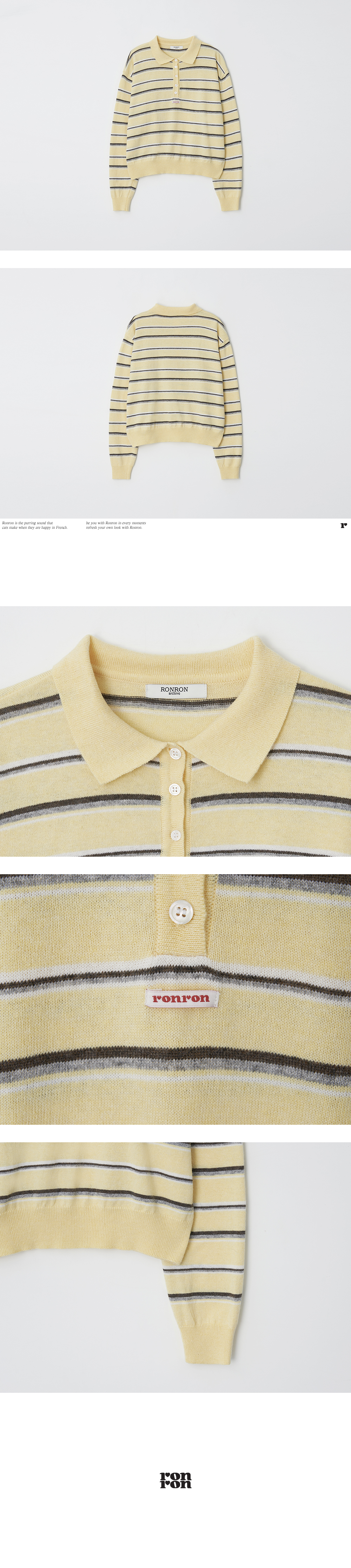 론론(RONRON)은 고양이의 행복감에서 모티브를 얻은 브랜드로, 로맨틱 캐주얼 감성의 이지웨어를 선보입니다.
