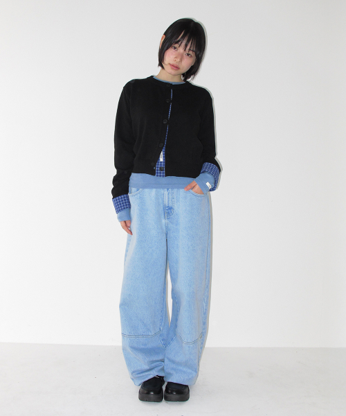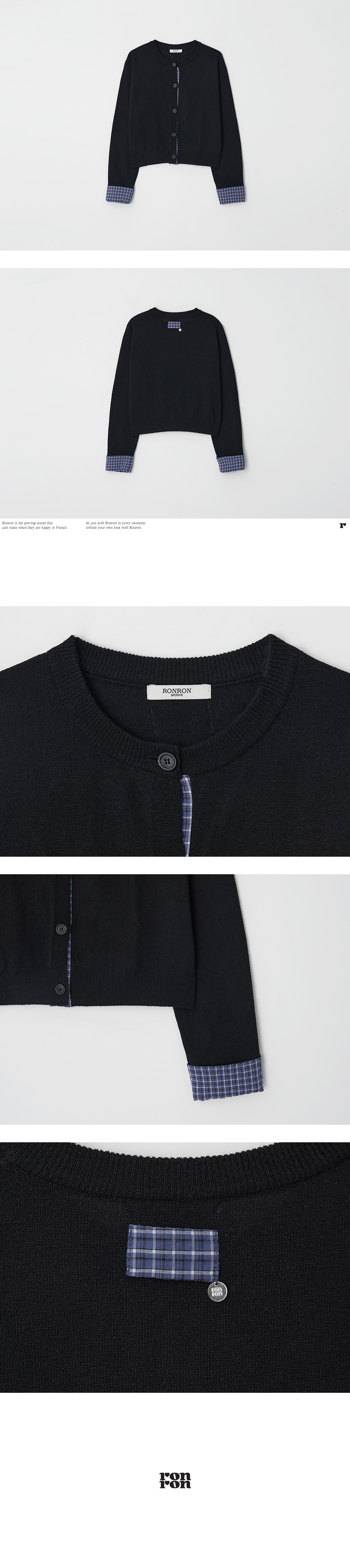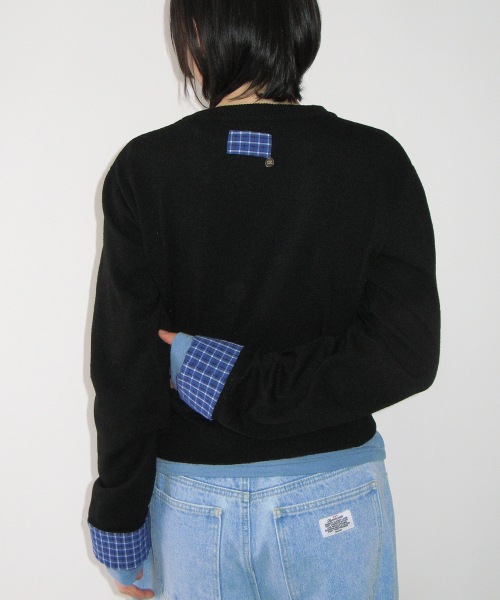 CHECK SHIRT POINTED KNIT CARDIGAN BLACK