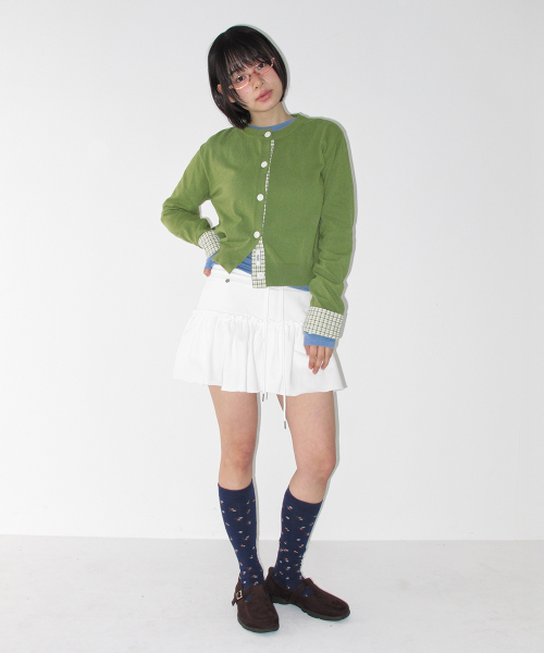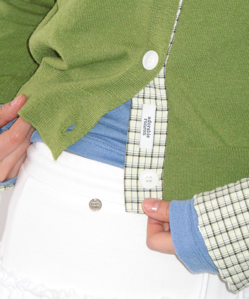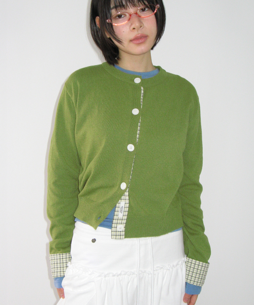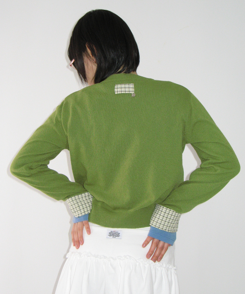 CHECK SHIRT POINTED KNIT CARDIGAN OLIVE