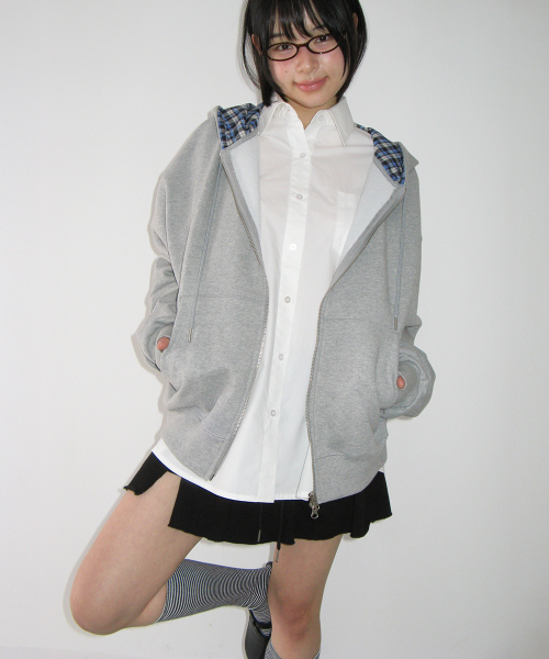 BUTTON CUFF HOODIE LONG SLEEVE GREY