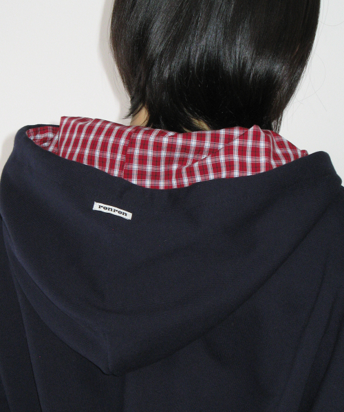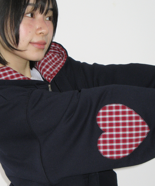 CHECK PATCH HOODIE ZIP UP NAVY