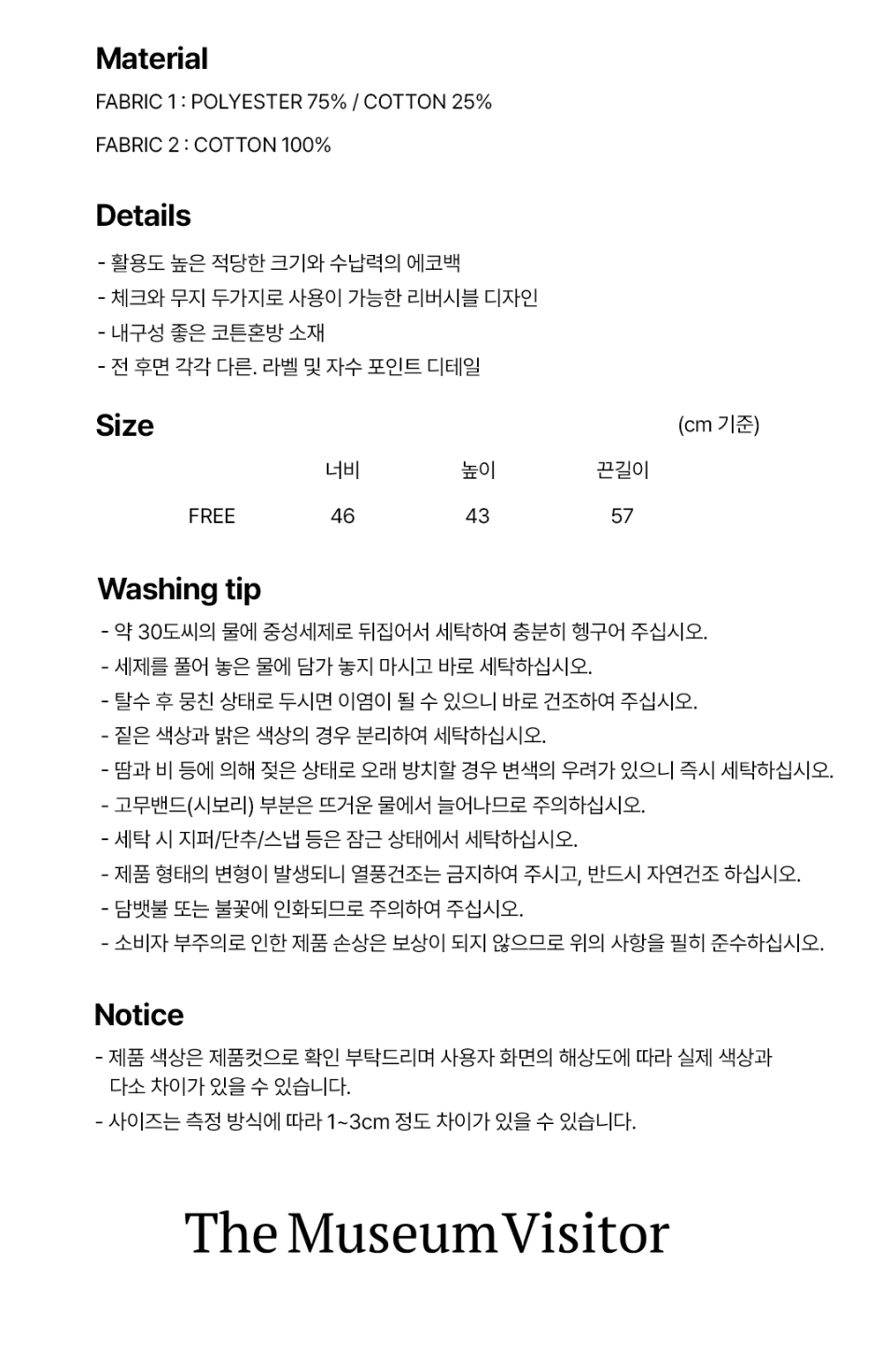 더뮤지엄비지터(THE MUSEUM VISITOR)는 2016년 디렉터 박문수의 독일 베를린 여정에서부터 시작된 브랜드입니다. 거리와 사람들에게서 느낀 자유와 사랑, 행복, 예술이 담긴 도시에서 받은 영감을 많은 이들에게 전하고자 합니다. 주로 꽃과 하트, 자연, 아이들이 디자인적 요소로 나타나며, 수작업이 가미된 차별적인 디자인 덕에 많은 마니아층의 사랑을 받고 있습니다.