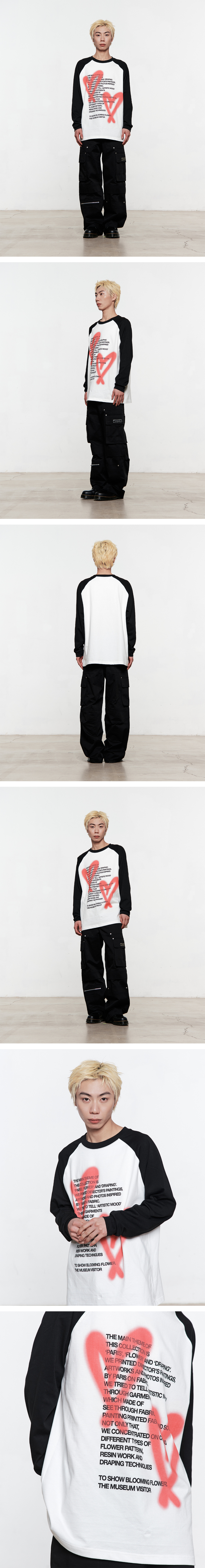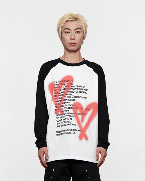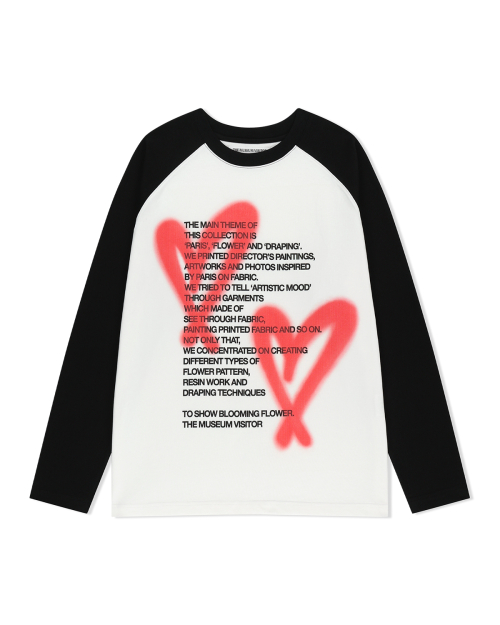 HEART SPRAY PRINTED RAGLAN LONG SLEEVE (BLACK)