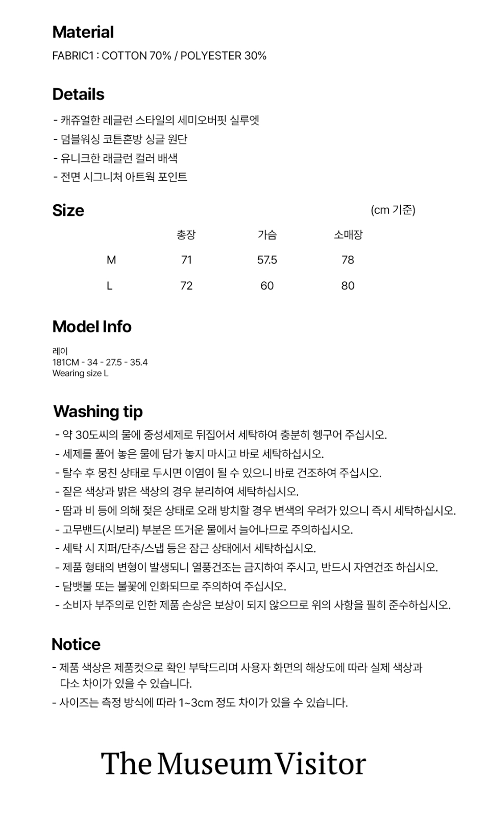 더뮤지엄비지터(THE MUSEUM VISITOR)는 2016년 디렉터 박문수의 독일 베를린 여정에서부터 시작된 브랜드입니다. 거리와 사람들에게서 느낀 자유와 사랑, 행복, 예술이 담긴 도시에서 받은 영감을 많은 이들에게 전하고자 합니다. 주로 꽃과 하트, 자연, 아이들이 디자인적 요소로 나타나며, 수작업이 가미된 차별적인 디자인 덕에 많은 마니아층의 사랑을 받고 있습니다.
