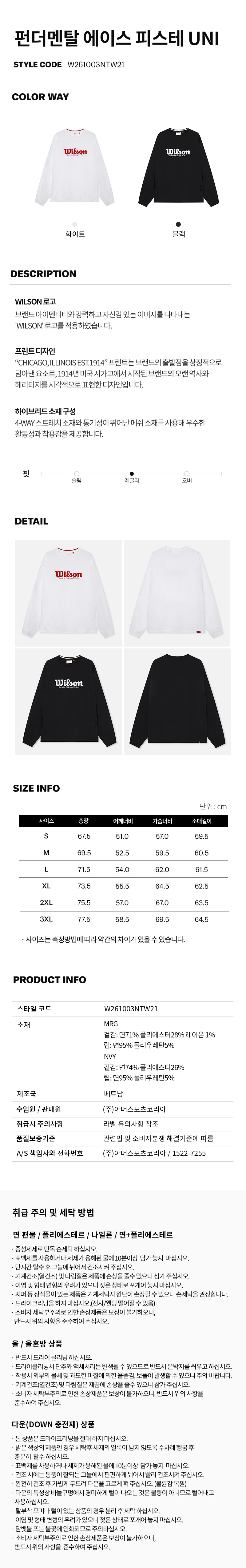 윌슨(WILSON)은 1914년에 설립되어 100여 년간의 역사를 통해 테니스, 골프, 농구, 야구, 풋볼의 스포츠 경기 형성에 일조하였습니다. 스포츠 전문연구개발을 통하여 혁신적인 제품을 지속적으로 생산하고 있으며, 어린이부터 성인에 이르기까지 모두가 스포츠를 즐길 수 있도록 돕는 브랜드입니다.