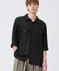 링클 시어 오버핏 롤 업 긴팔 셔츠_블랙