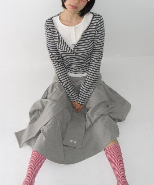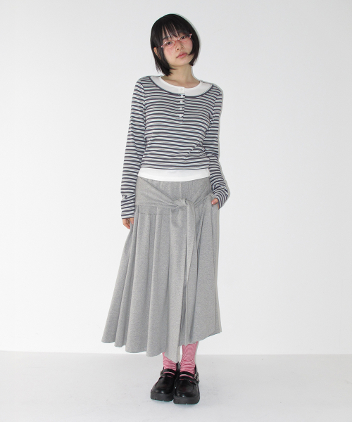 STRAP KNOT LONG SKIRT GREY