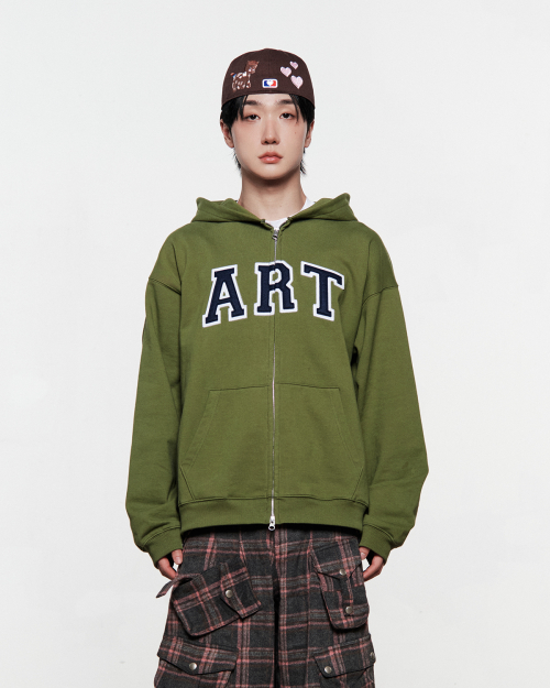 ART APPLIQUE HOODIE ZIP UP (OLIVE)