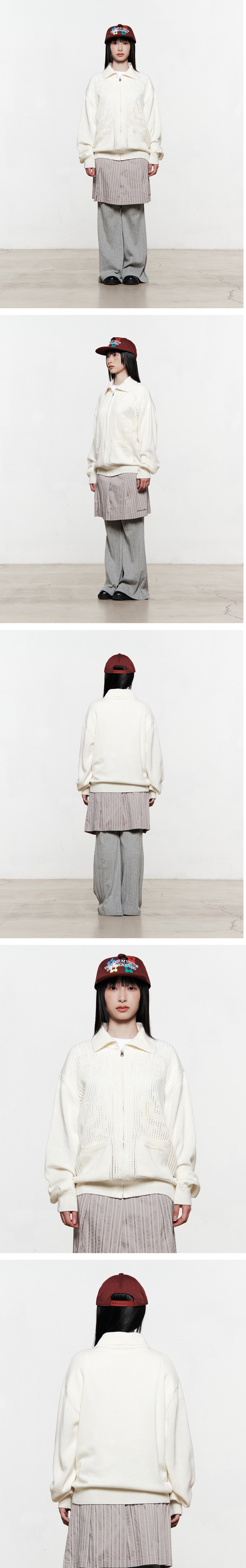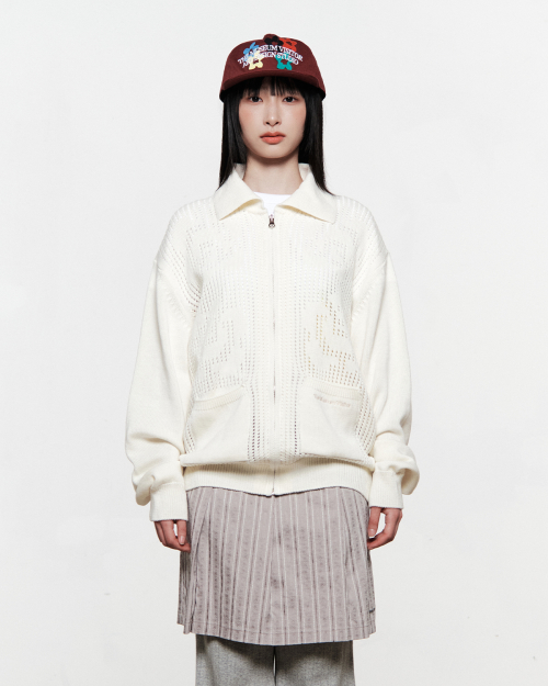 OPENWORK KNIT FULL ZIP UP (IVORY)