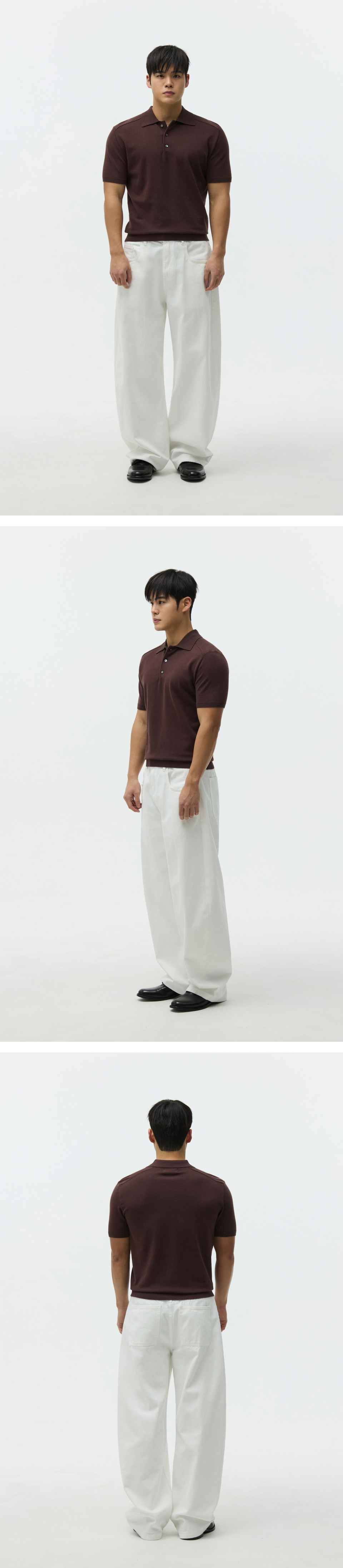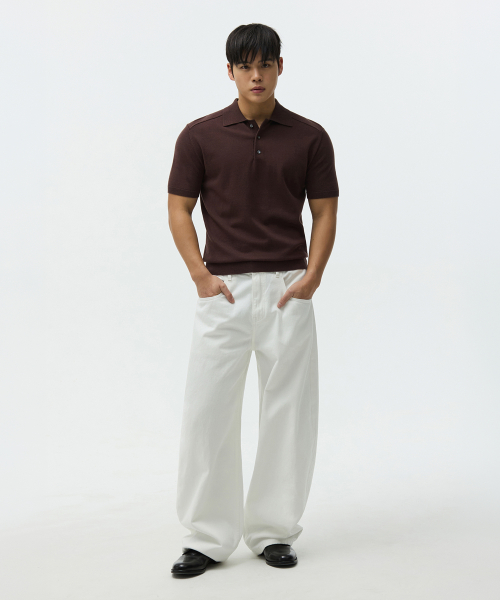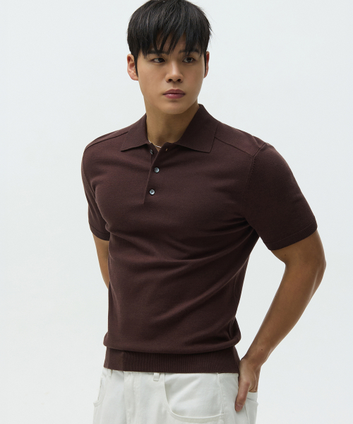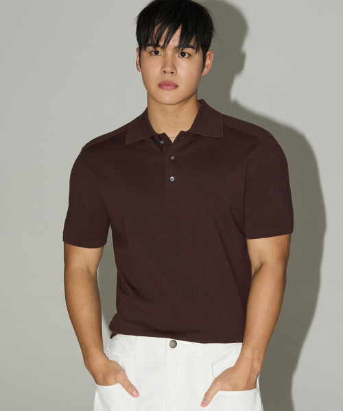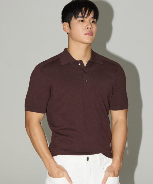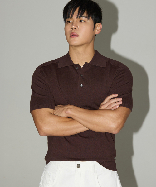 숄더 라인 머슬핏 카라 니트 브라운