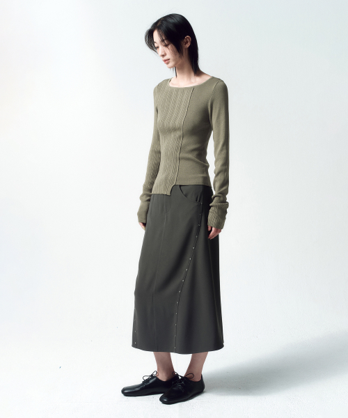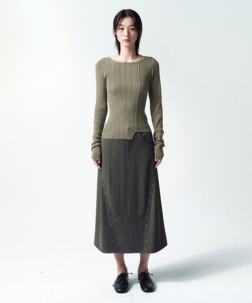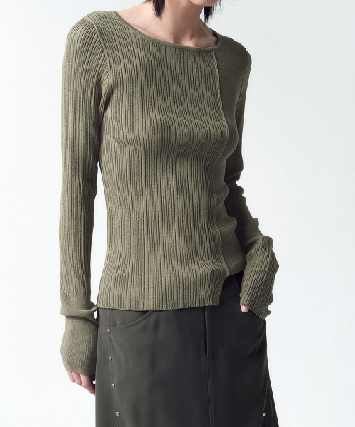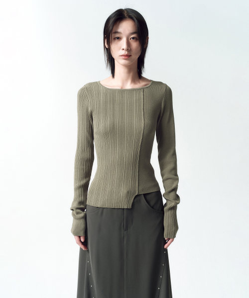 언밸런스 믹스드 니트 LIGHT KHAKI