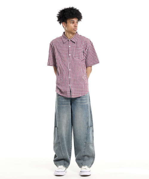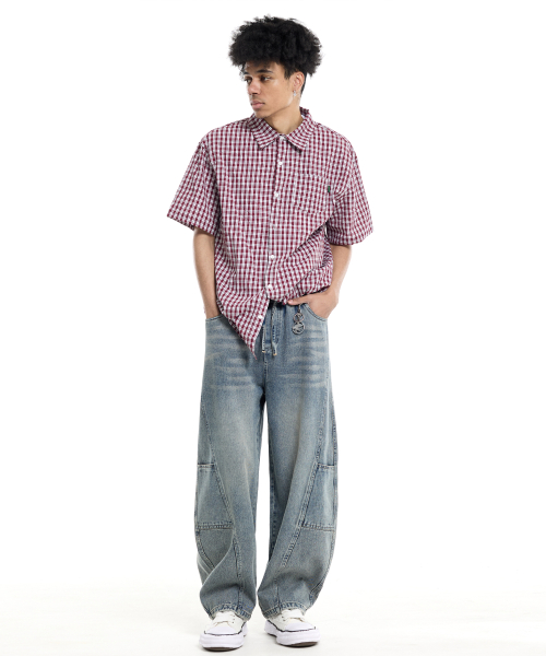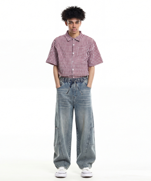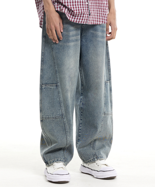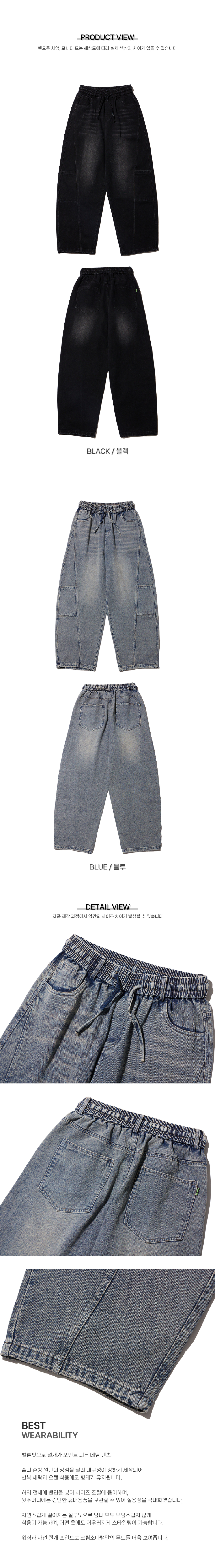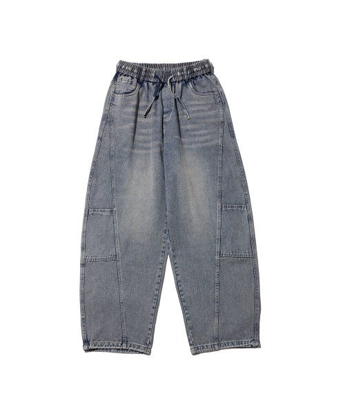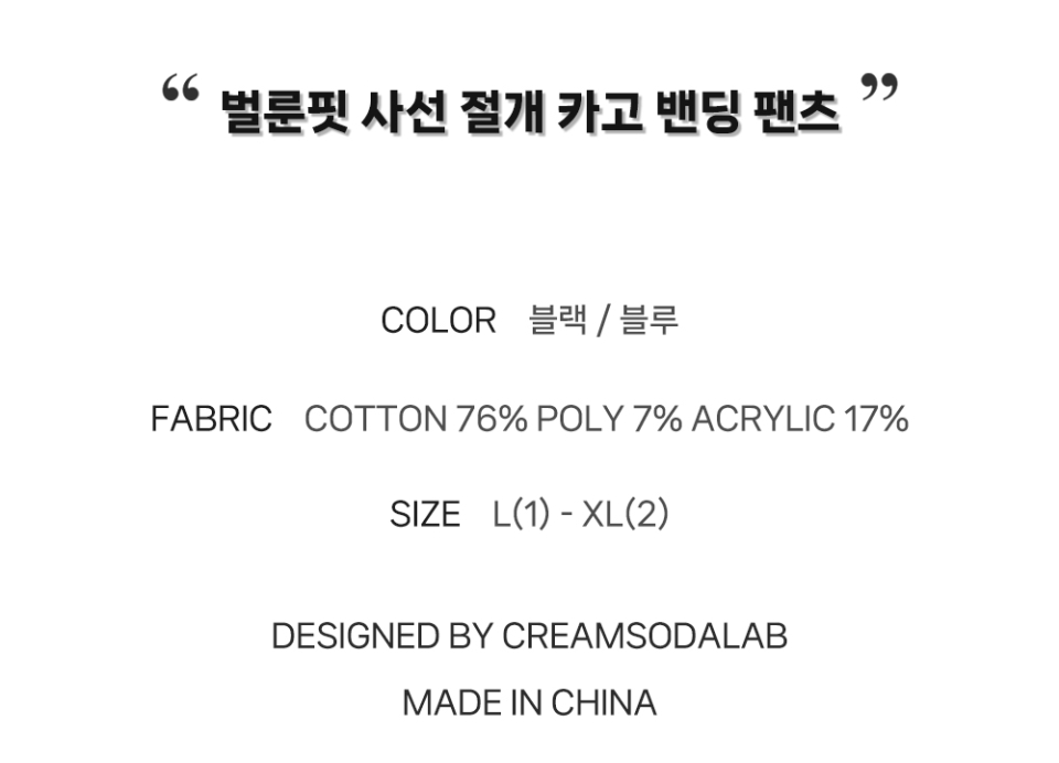 벌룬핏 사선 절개 카고 밴딩 팬츠 블루