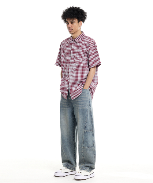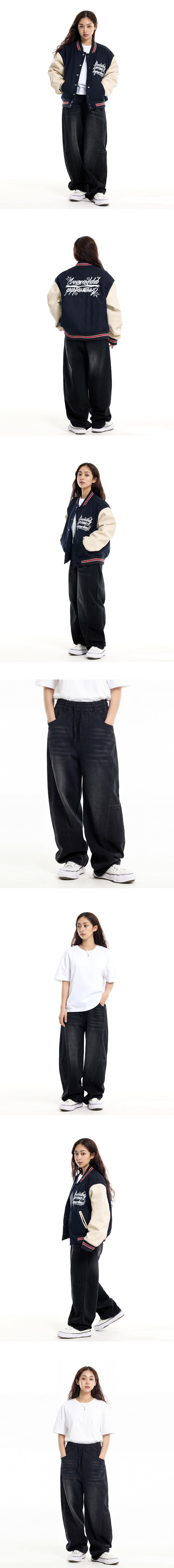 화이트 커브드 절개라인 와이드 코튼 팬츠