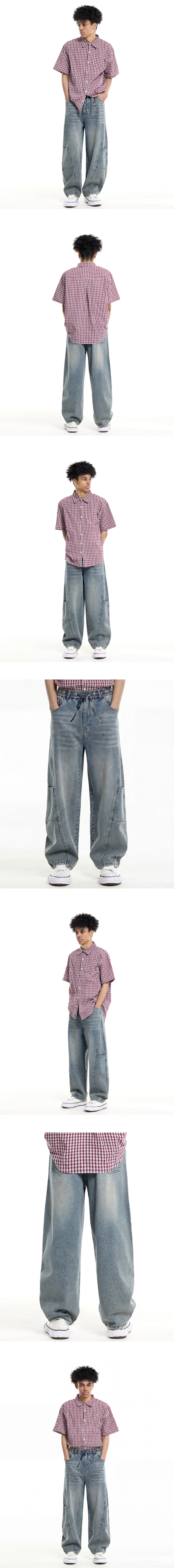 와이드 파라슈트 카고 스트링 사방스판 리벳 팬츠