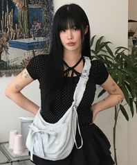 클로버하트 셔링 미디움 나일론 호보백 Blue