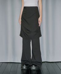 드레이프 핀턱 미디 스커트 팬츠 세트 - BLACK