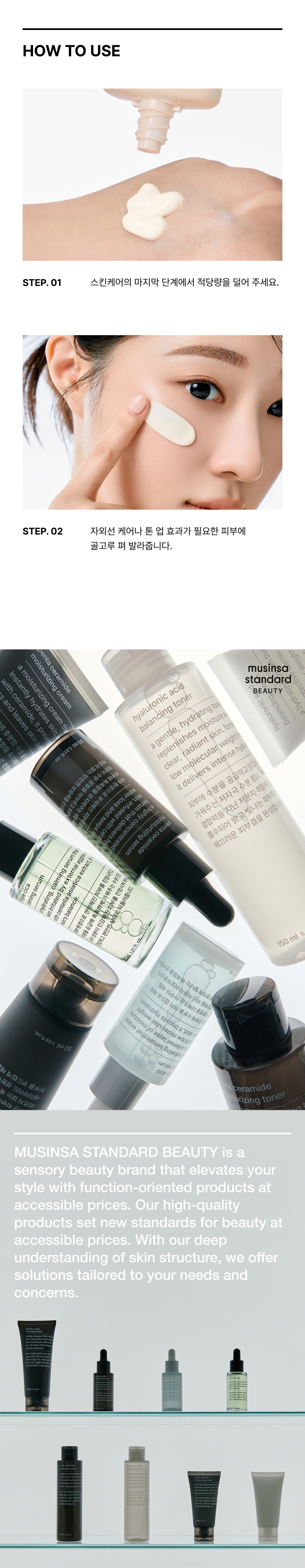 무신사 스탠다드 뷰티(MUSINSA STANDARD BEAUTY)는 기본에 충실합니다. 제품 본연의 기능에 집중하며 합리적인 가격으로 우리들의 일상이 한층 더 뷰티의 세계에 가까워질 수 있도록 돕는 캐주얼 웨어러블 뷰티 브랜드입니다.
