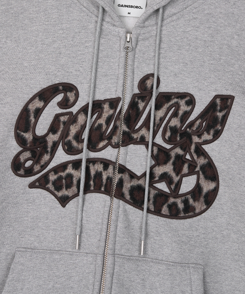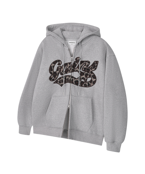 아플리케 스타로고 후드집업_ 호피VER._멜란지그레이/호피