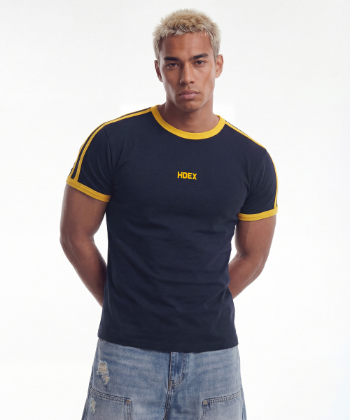 이지 머슬핏 트랙 링거 숏 슬리브 (Dark Navy)