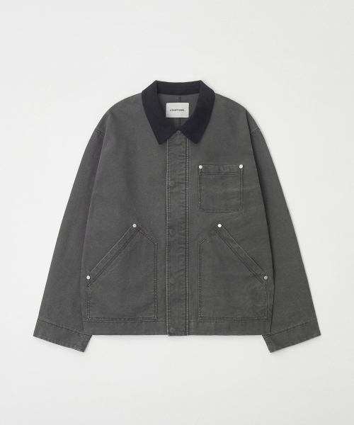 피그먼트 오버사이즈 후디드 스웨트 집업 [차콜 그레이]