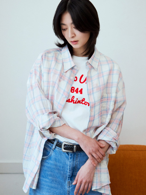 올데이 린넨라이크 체크 셔츠(핑크)