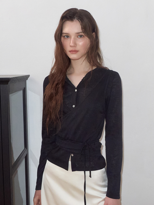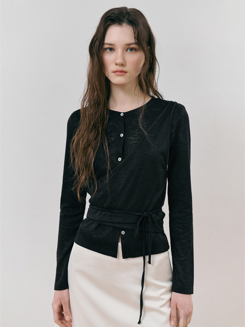 Wrap Cardigan T-Shirt, Black