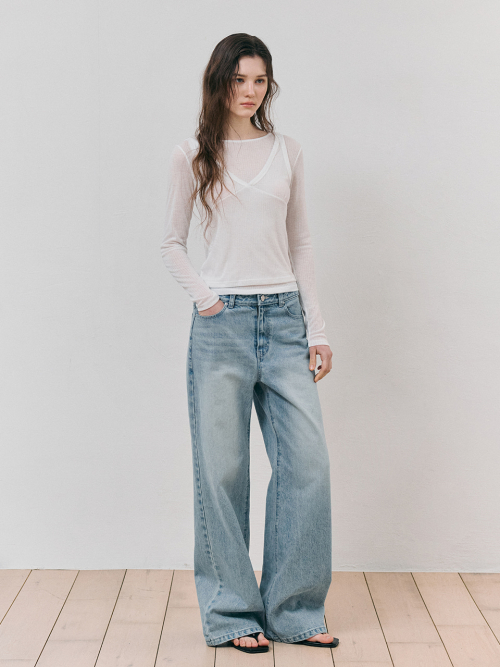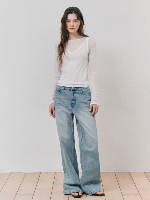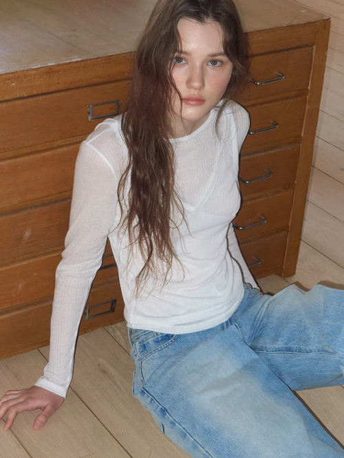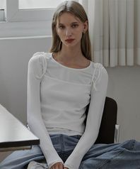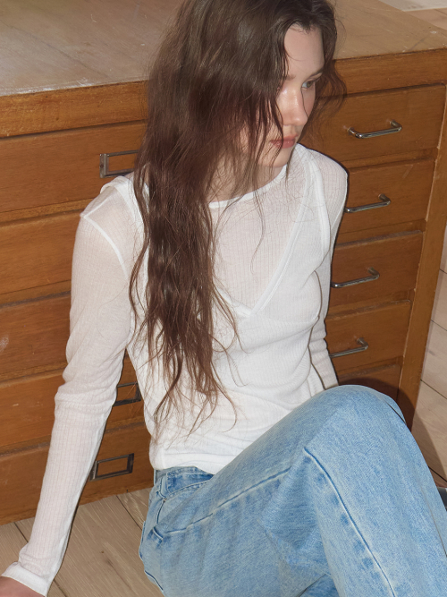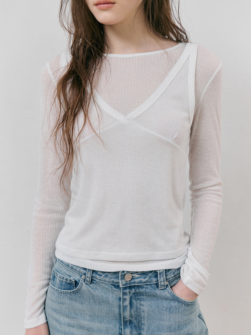 [SET] 보트넥 레이어드 골지 티셔츠 화이트 MDTS087WHITE