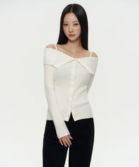 우먼즈 리브드 턴 다운 오프 숄더 가디건 [아이보리]