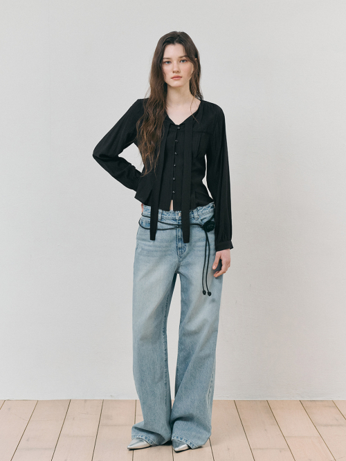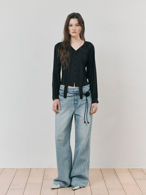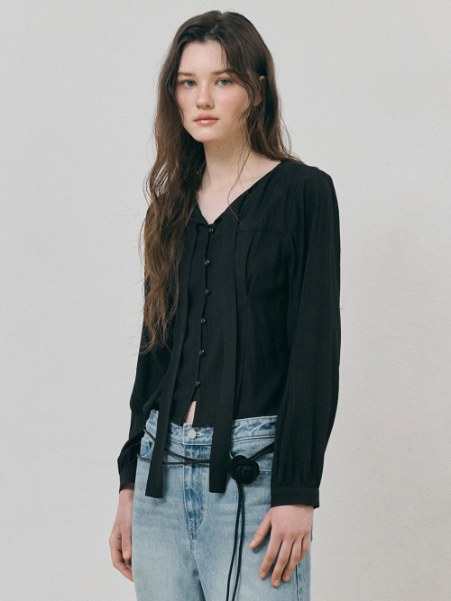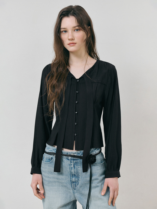 Tie Pintuck Blouse, Black