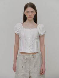 Lace Pintuck Shirring Blouse, White