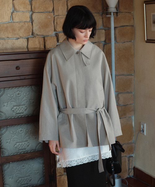 SIOT4184 벨티드 하프 트렌치 자켓_Greige