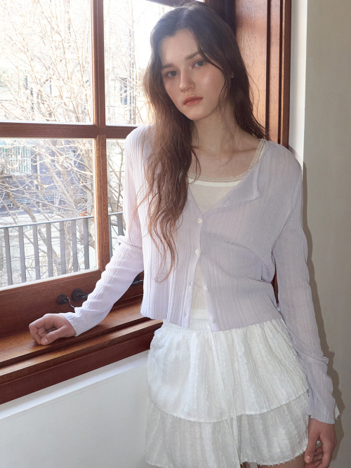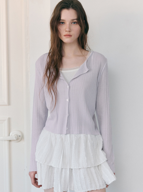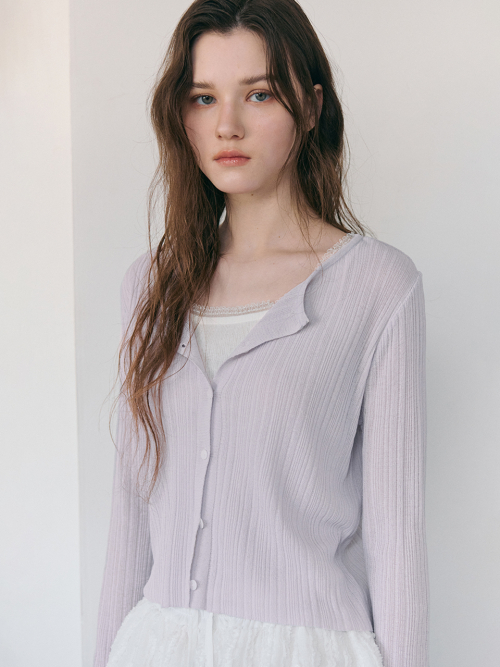 Linen Round Cardigan, Light Purple