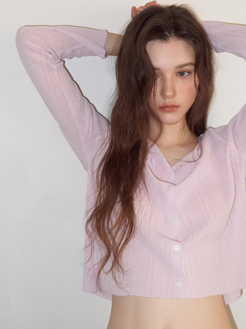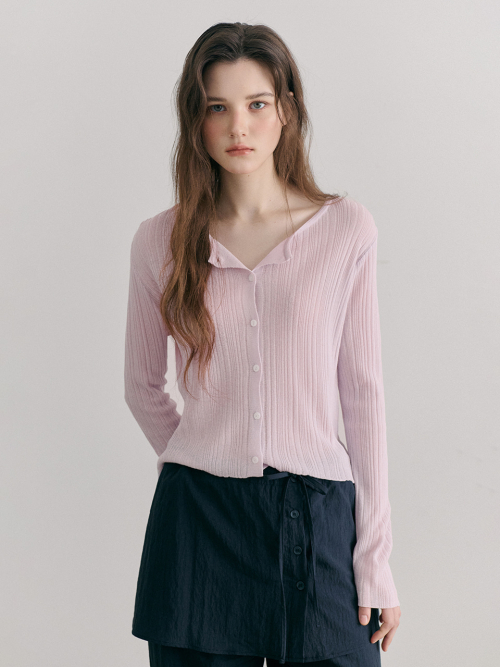 Linen Round Cardigan, Lavender Pink