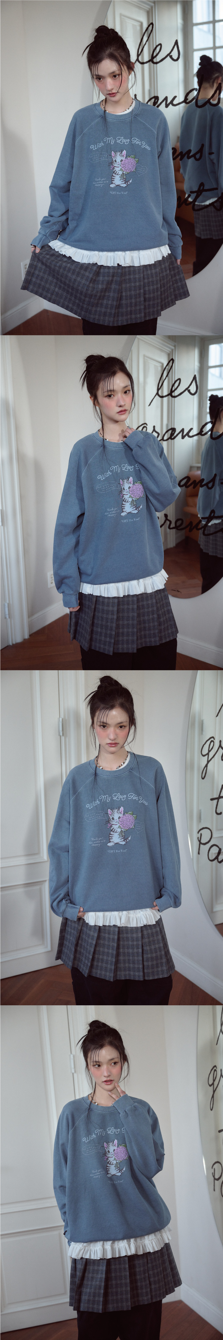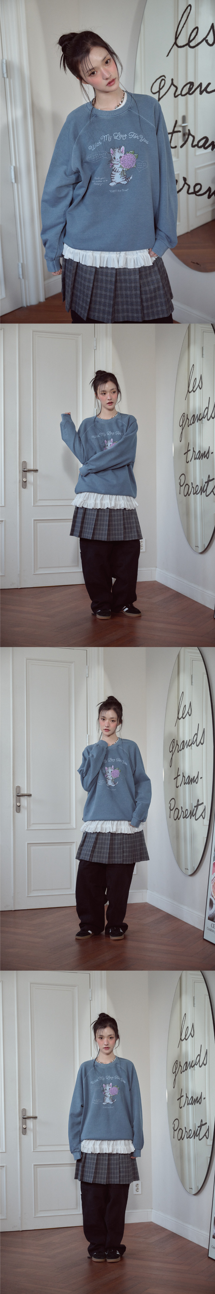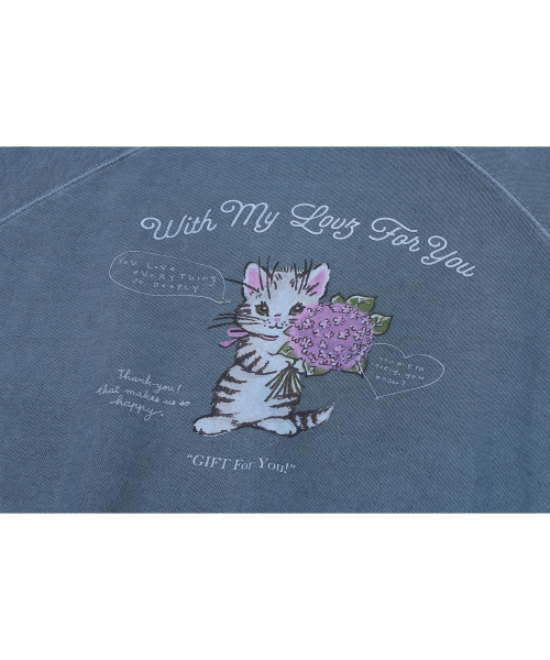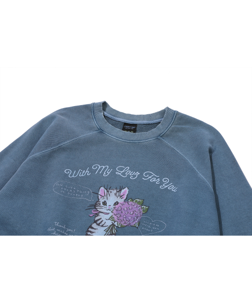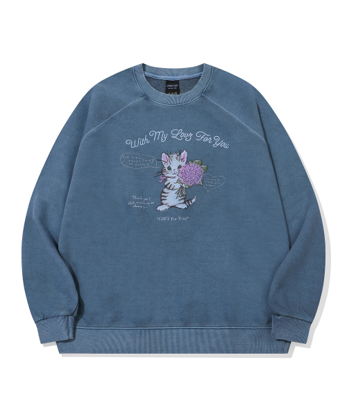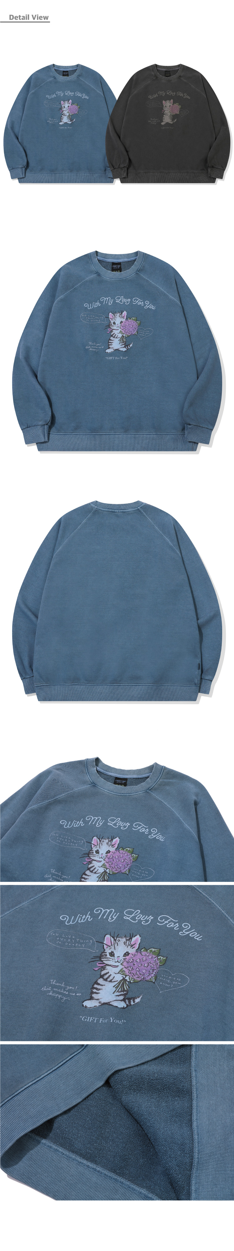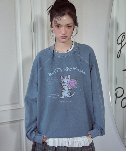 캣 스티치 레글런 피그먼트 맨투맨 고스트그레이