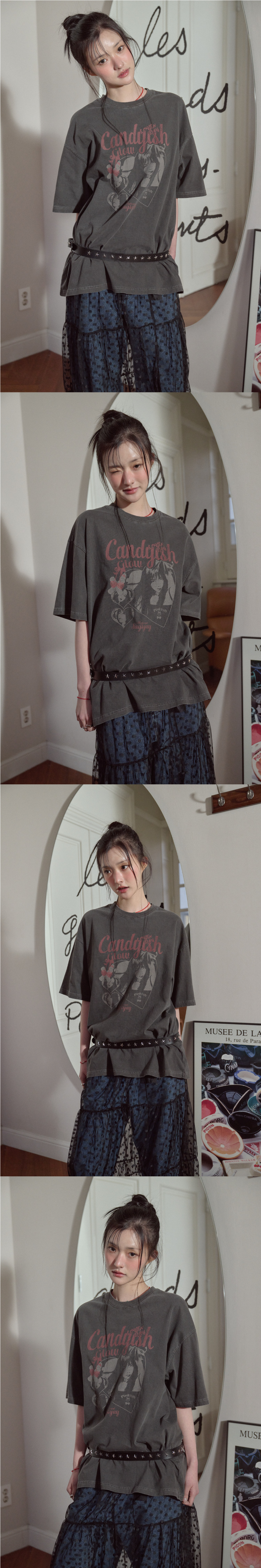 캔디쉬 피그먼트 반팔티 스모크블랙