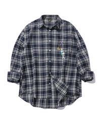 노마드 오버핏 체크 셔츠 네이비