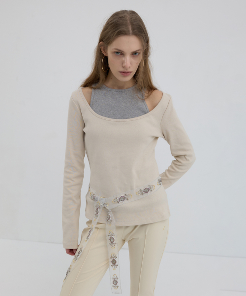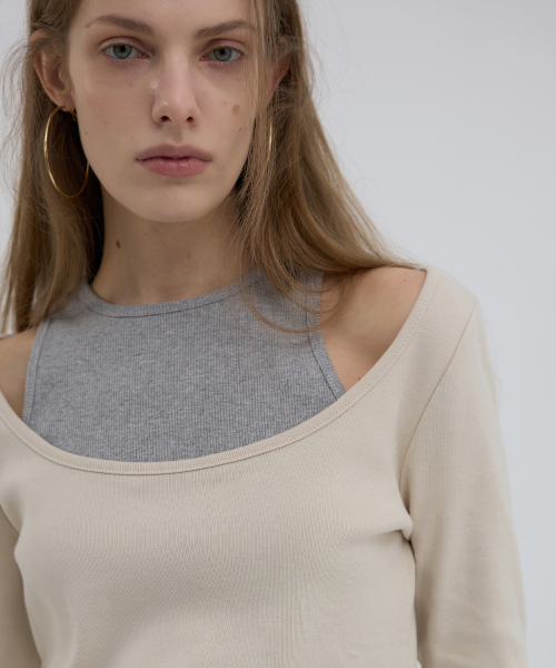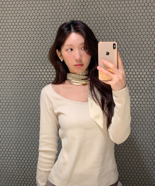 - 와이드한 넥 라인이 포인트인 슬림 롱 슬리브 티셔츠입니다.