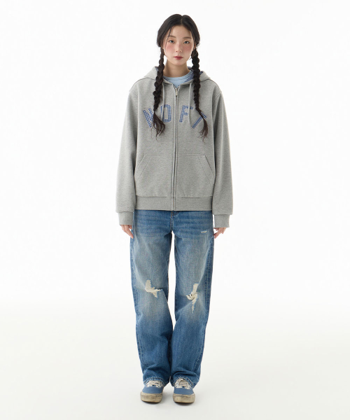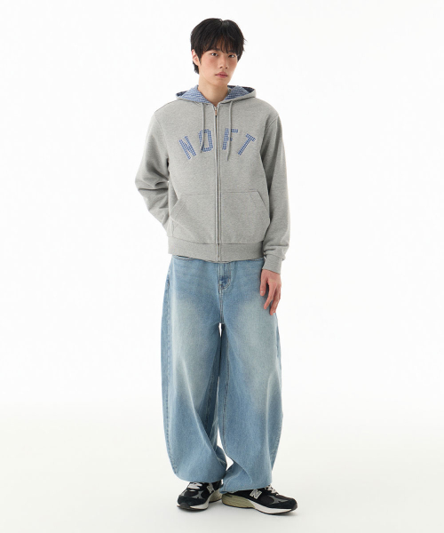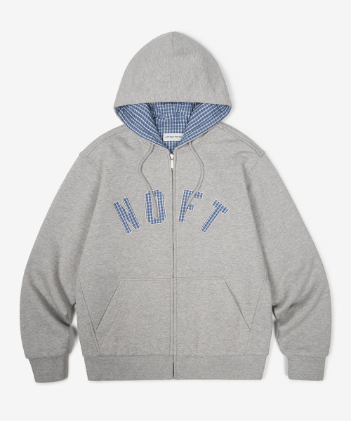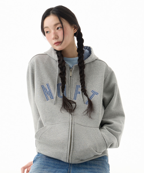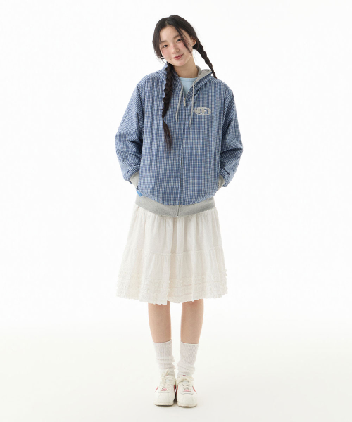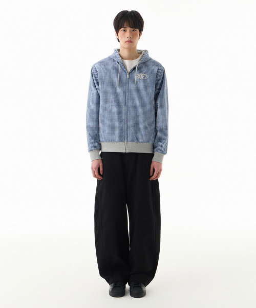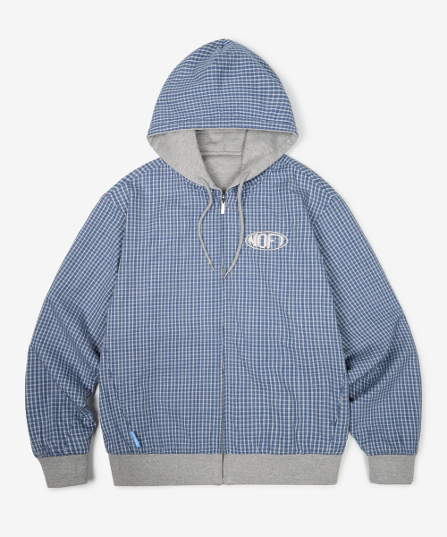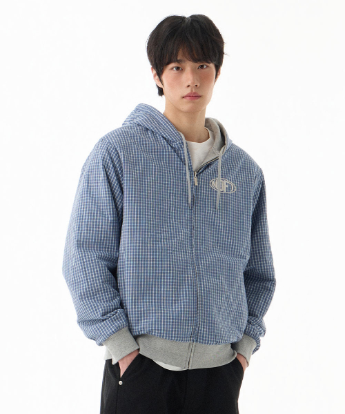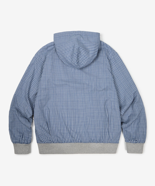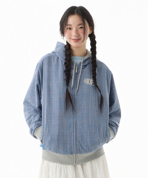 체크 패턴 리버서블 후드 집업 [블루]