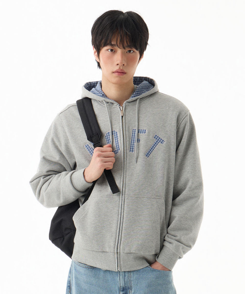 체크 패턴 리버서블 후드 집업 [버건디]
