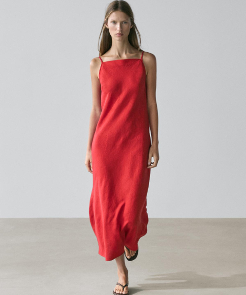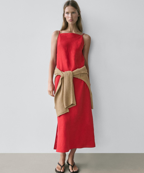 | 제품 이름: 일자 넥라인 린넨 니렝스 원피스 | ||