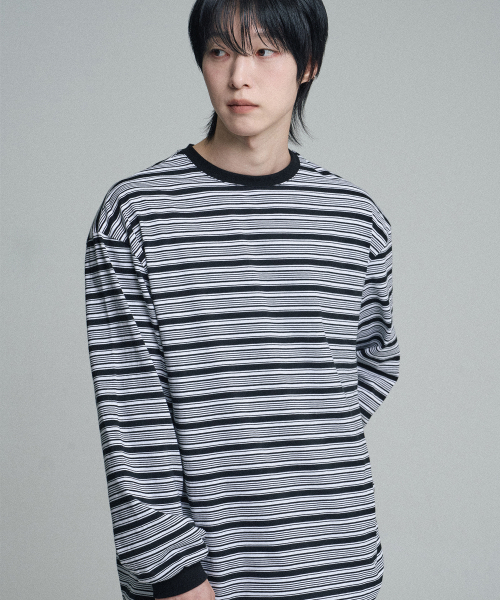 멀티 스트라이프 롱슬리브 티셔츠 블랙